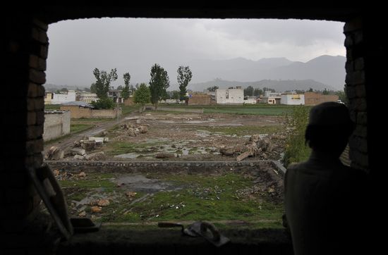 (Photo: A Pakistani labourer works at a house in front of the demolished compound of slain Al-Qaeda leader Osama bin Laden, in northern Abbottabad on April 25, 2012. A year after Osama bin Laden died in a US raid, Al-Qaeda keeps spreading its message of terror in Pakistan, analysts say, with splinter groups threatening the country’s fragile stability. A campaign of missile attacks by unmanned US drone aircraft in Pakistan’s lawless northwest, long a hideout for militants, has weakened Al-Qaeda’s structure by eliminating some of its leadership. By Aamir Qureshi/AFP/Getty Images)