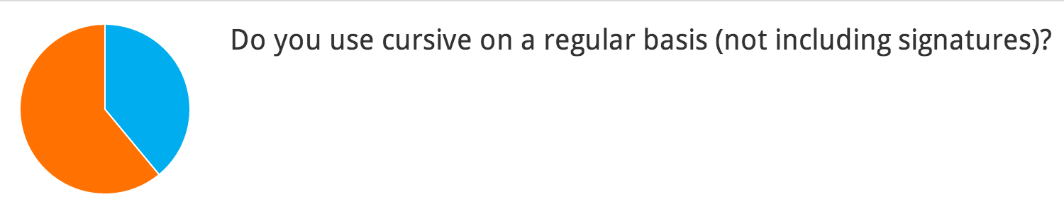 That 39% jumps to 50% among readers 35 and older, while only 28% of millennials say they use cursive. Among female readers, 63% use cursive, while only 30% of male readers do the same. And among all readers, a minority of 41% believe teachers should stop teaching cursive to children. Below are some remaining thoughts on the popular thread: