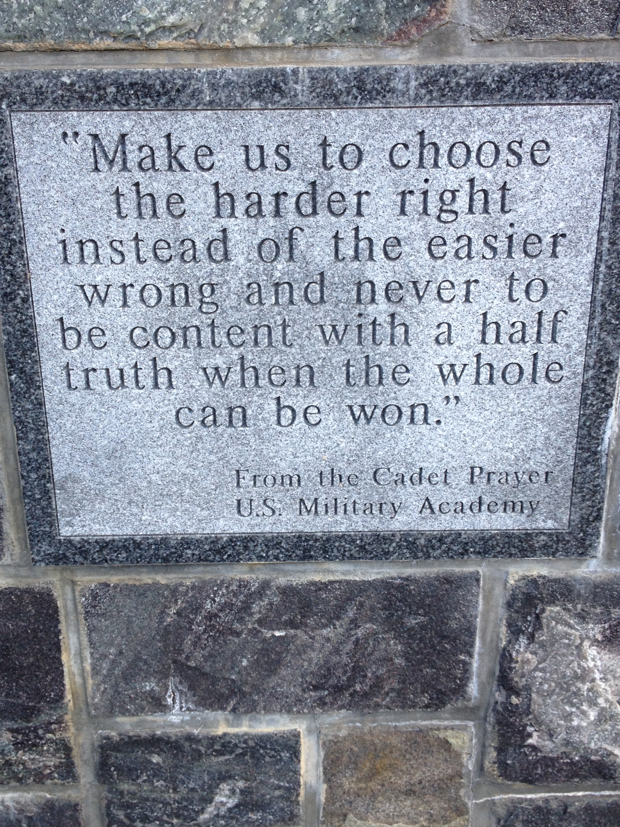 (Photo: a plaque at West Point on the integrity of America’s armed forces through history – grotesquely betrayed by the Bush administration.)