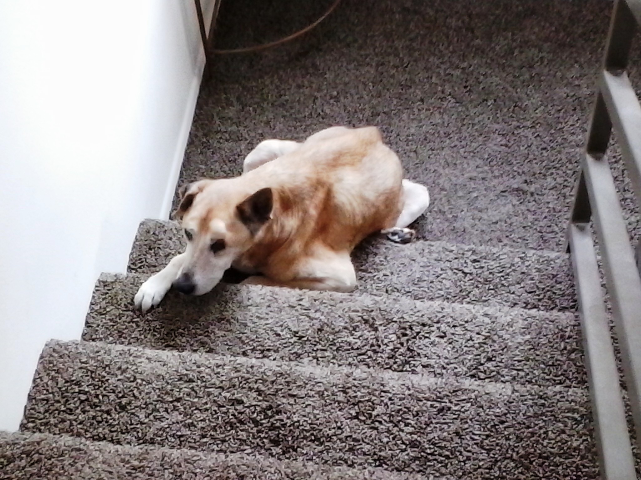 Friday was the first day in her life that my beloved Dusty didn’t wolf all her food down. She creaked out of her crate, meandered toward it and then began to walk back. It’s been like that every morning and evening since. The growth in her bladder seems to be constraining her more and more: she now seems permanently thirsty and proportionately incontinent. She peed through her diaper and entire bed the other night. This morning, we woke up to puke everywhere. This is happening more and more.