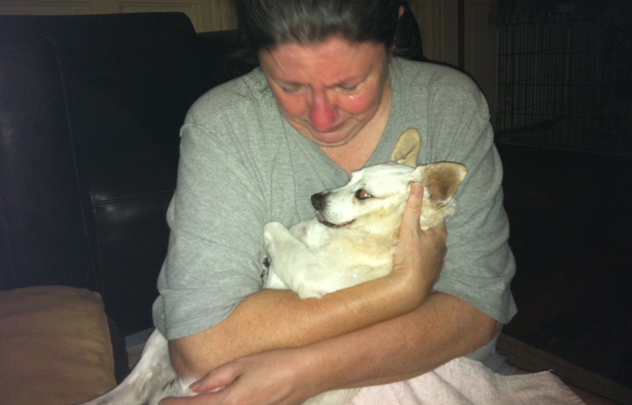 She died eight days ago, at home, in my arms. I asked my partner to take a picture of me holding her. I’m not sure why. I think it was because I didn’t want to let her go and thought a photograph would give me a way to hold her forever. I don’t use Twitter or Facebook, so I sent news of her passing via text message. But I wanted to share more than the news of her death. I wanted to share the news of my grief. I find it’s difficult to convey with words the enormity of such things, so I sent the photo too, which I’ve attached here as well.