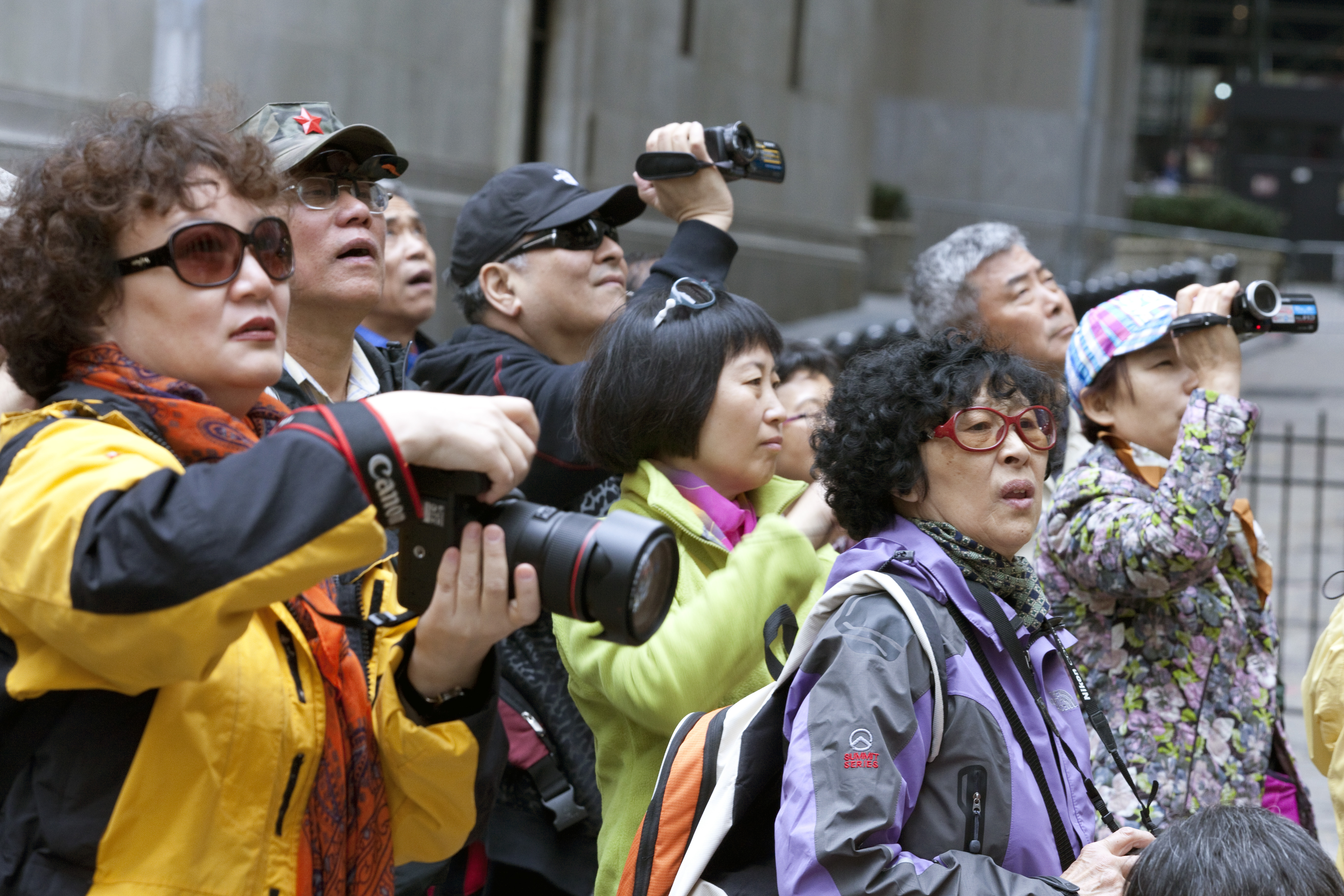 (Photo: Chinese tourists take photos on Wall Street near the New York Stock Exchange, NYSE, on April 11, 2013 in New York, New York. The growing affluence and openness in China allows the Chinese to travel. By Melanie Stetson Freeman/The Christian Science Monitor via Getty Images)